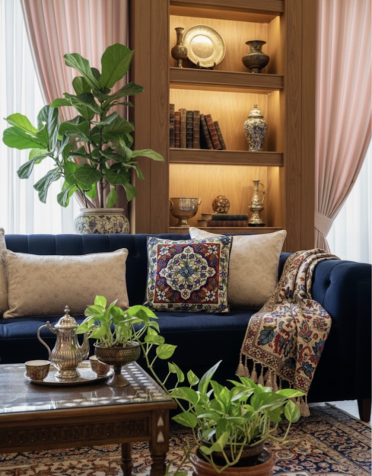 Red with sapphire blue and understated elegance for a touch of regal sophistication.