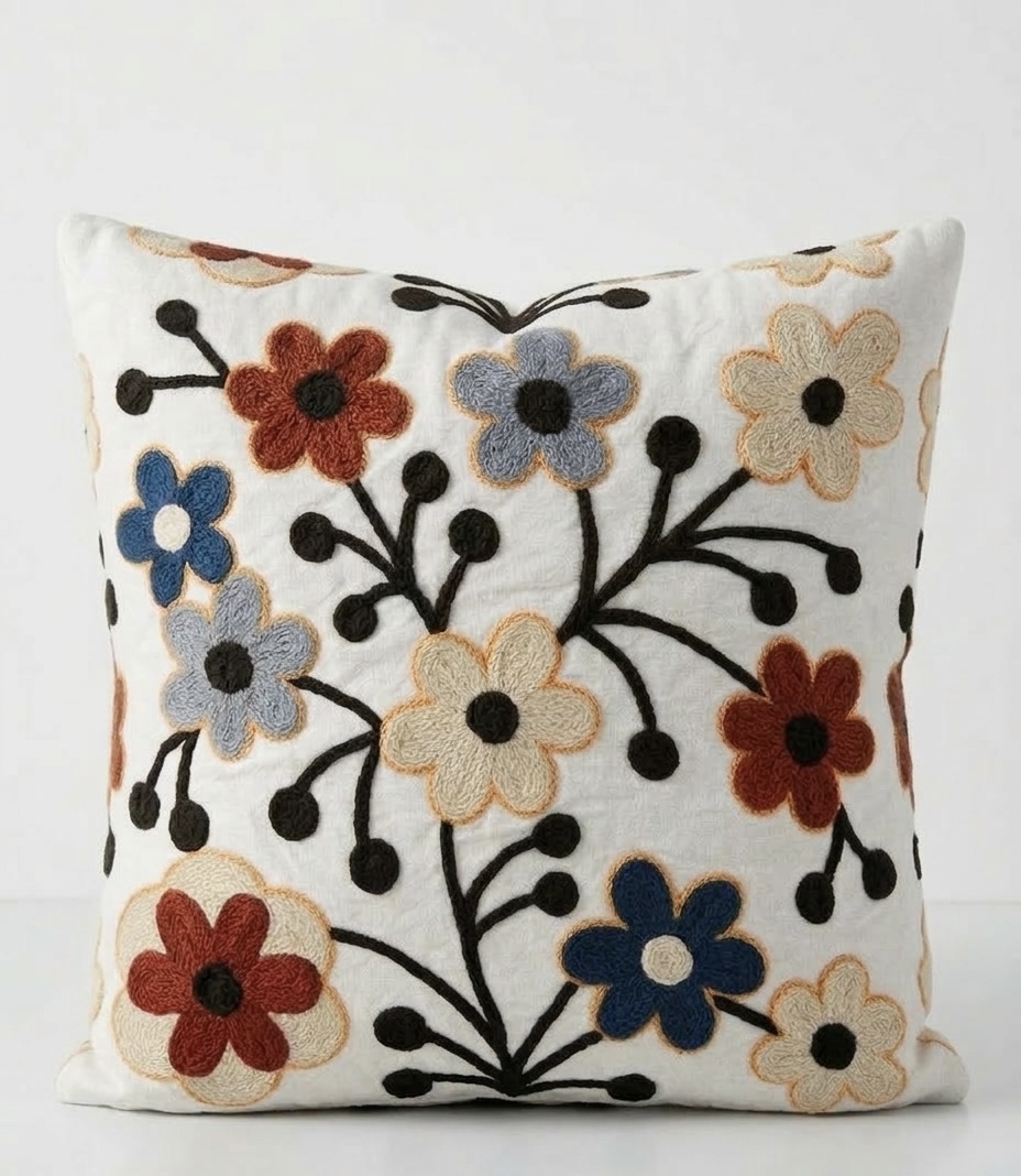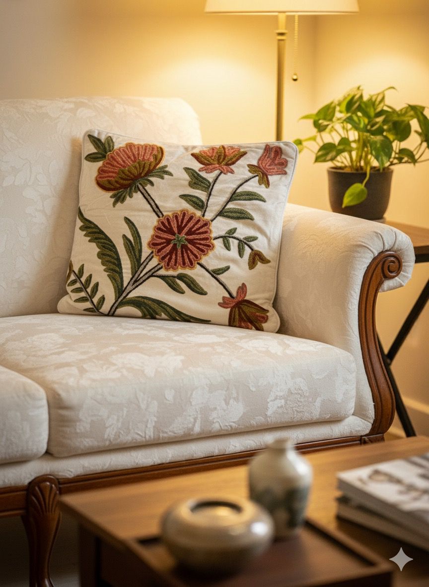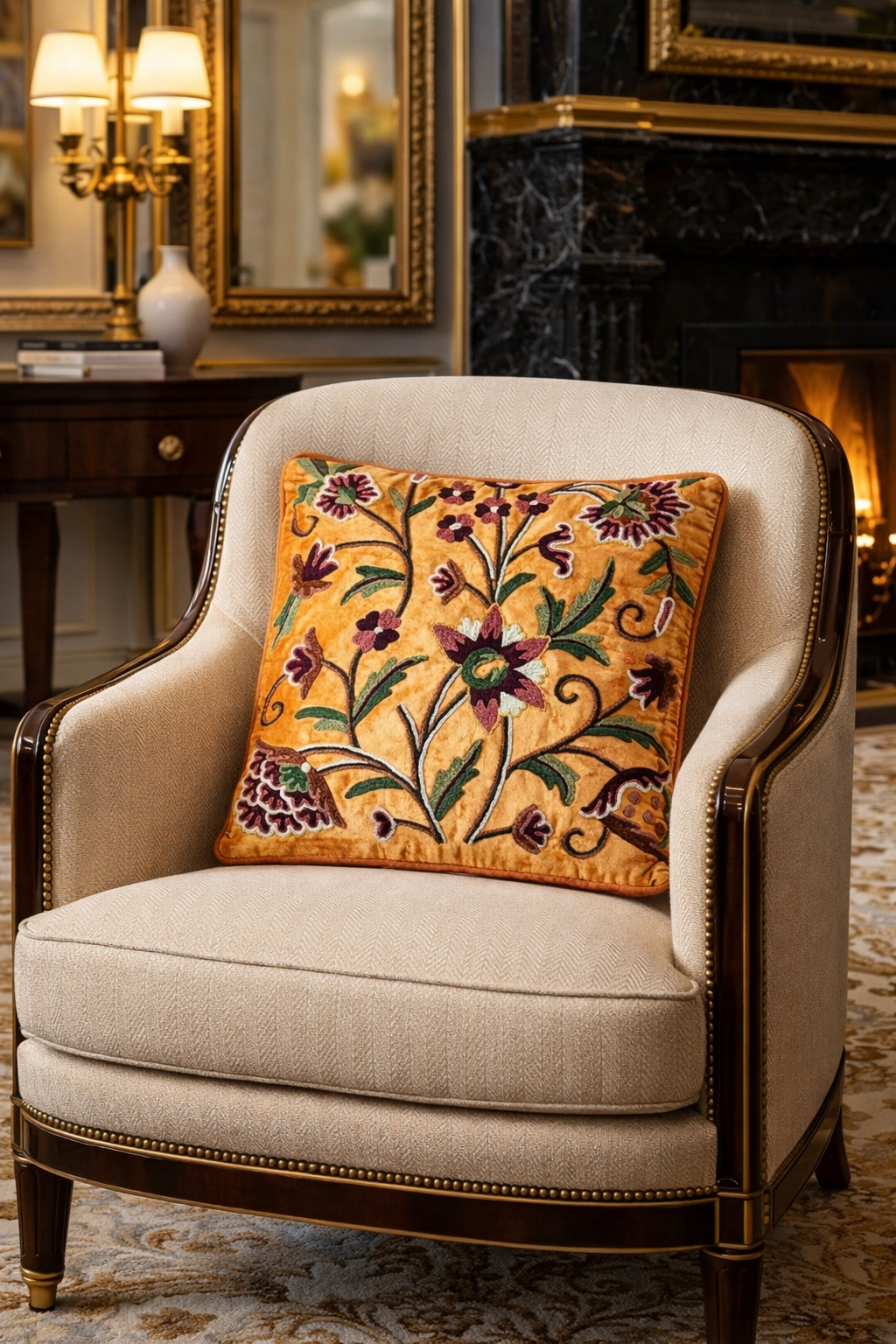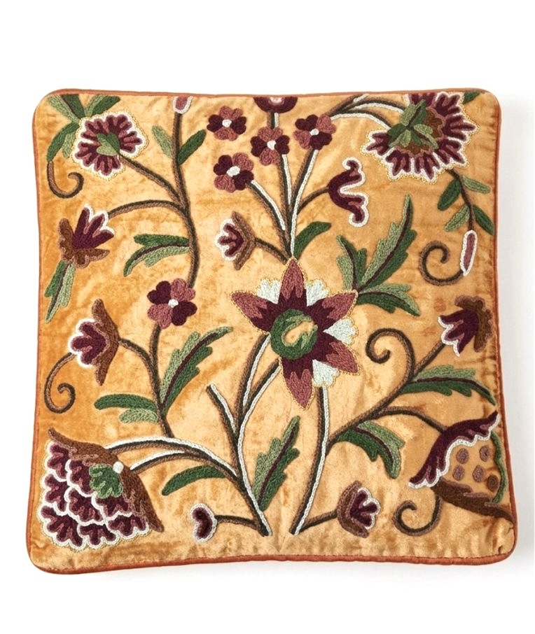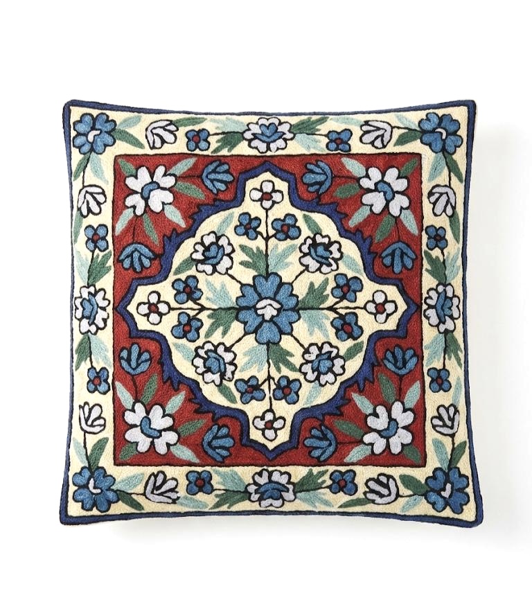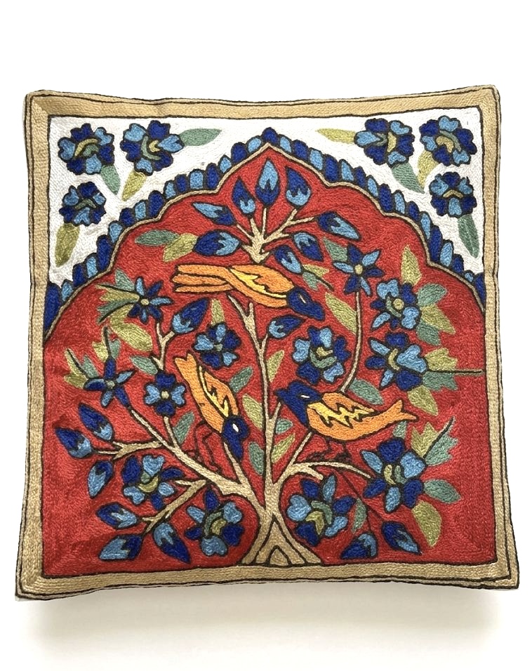 Birds and florals in a design inspired by traditional Kashmiri artistry.