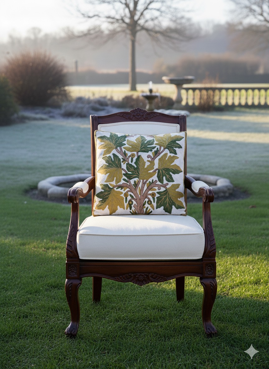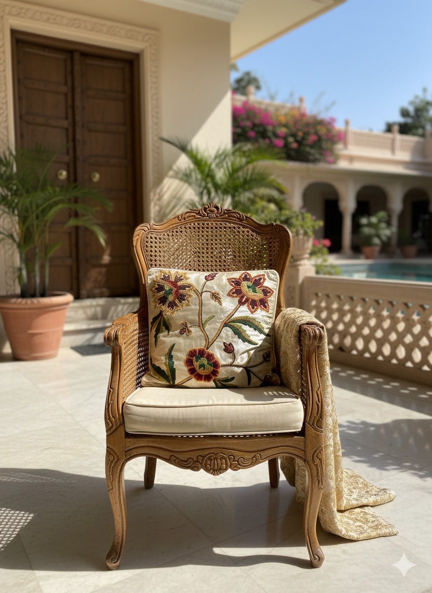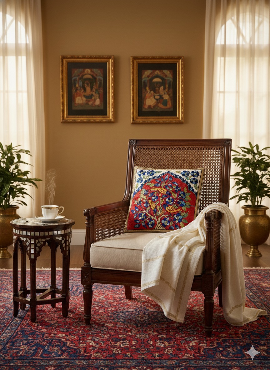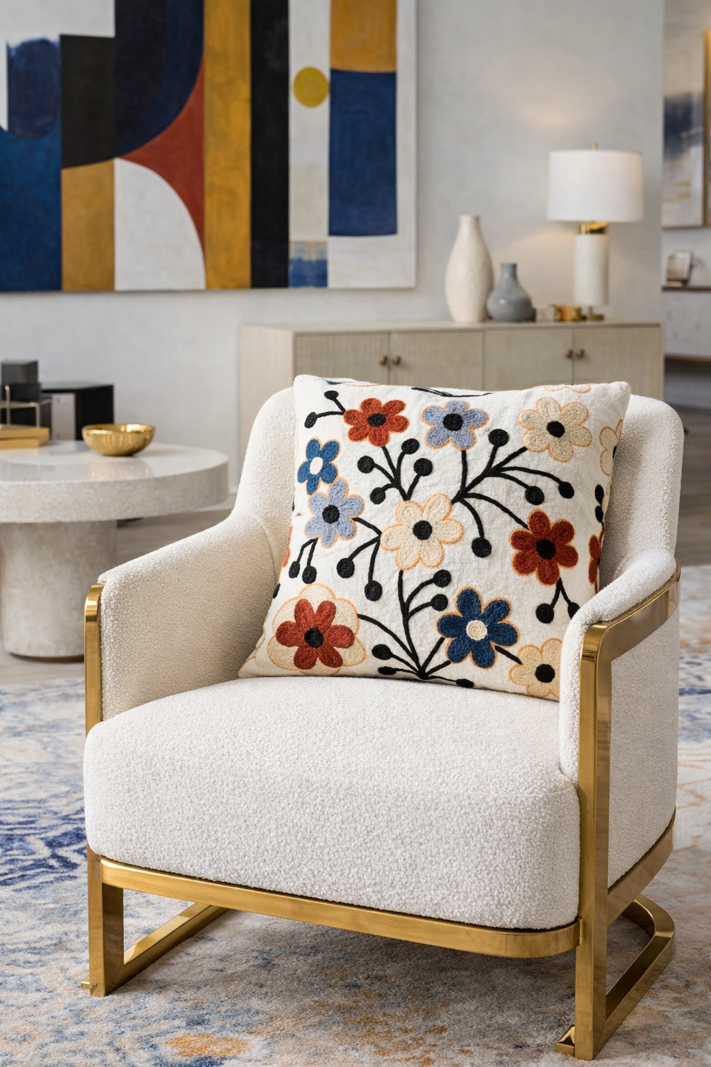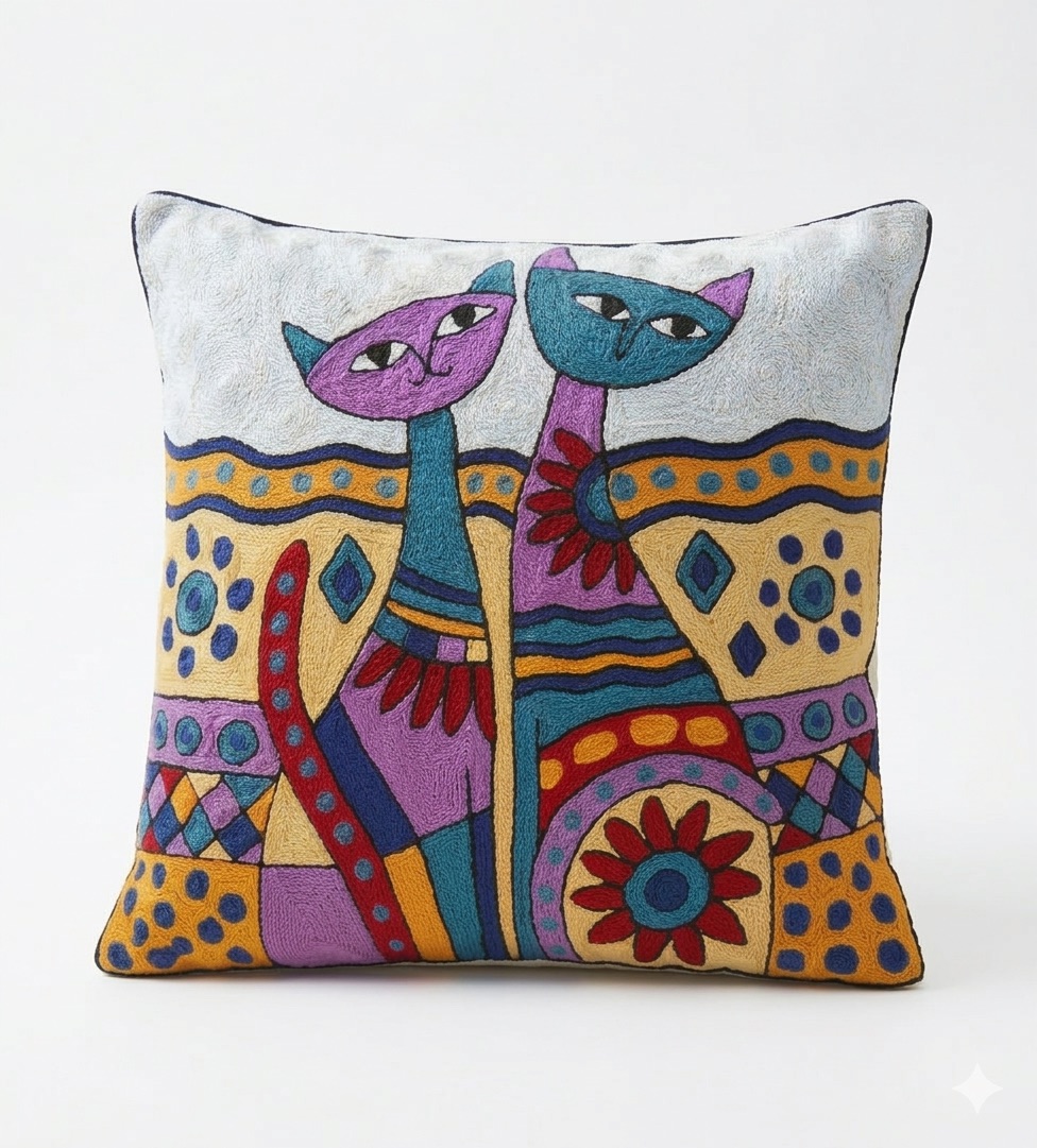 Birds and florals in a design inspired by traditional Kashmiri artistry.